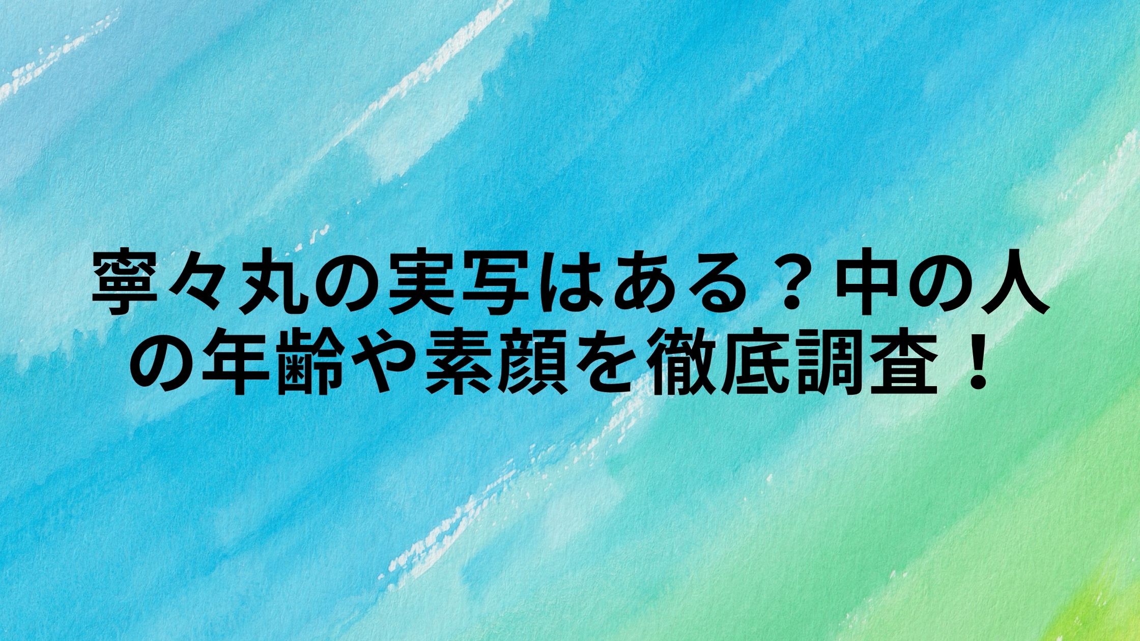 「寧々丸って実写あるの?」「中の人の年齢は何歳くらい?」と気になって検索した人は多いはずです。